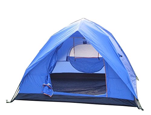 ZJKC® 4-Person Double Layer Popup One Room Camping Tent 190T Polyester Rainfly Waterproof 7.9mm Fibreglass Pole Hiking Tent 2.9lbs Blue